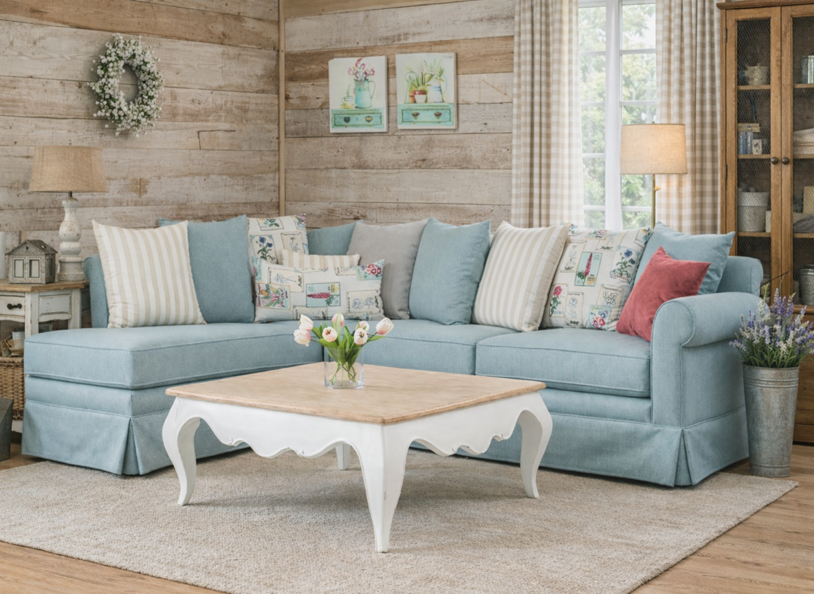 Καναπές γωνία χειροποίοτητος δικής μας κατασκευής διαστάσεων 3,00 m * 2.,30 m. Ο σκελετός είναι κατασκευασμένος από ξύλο οξυάς.