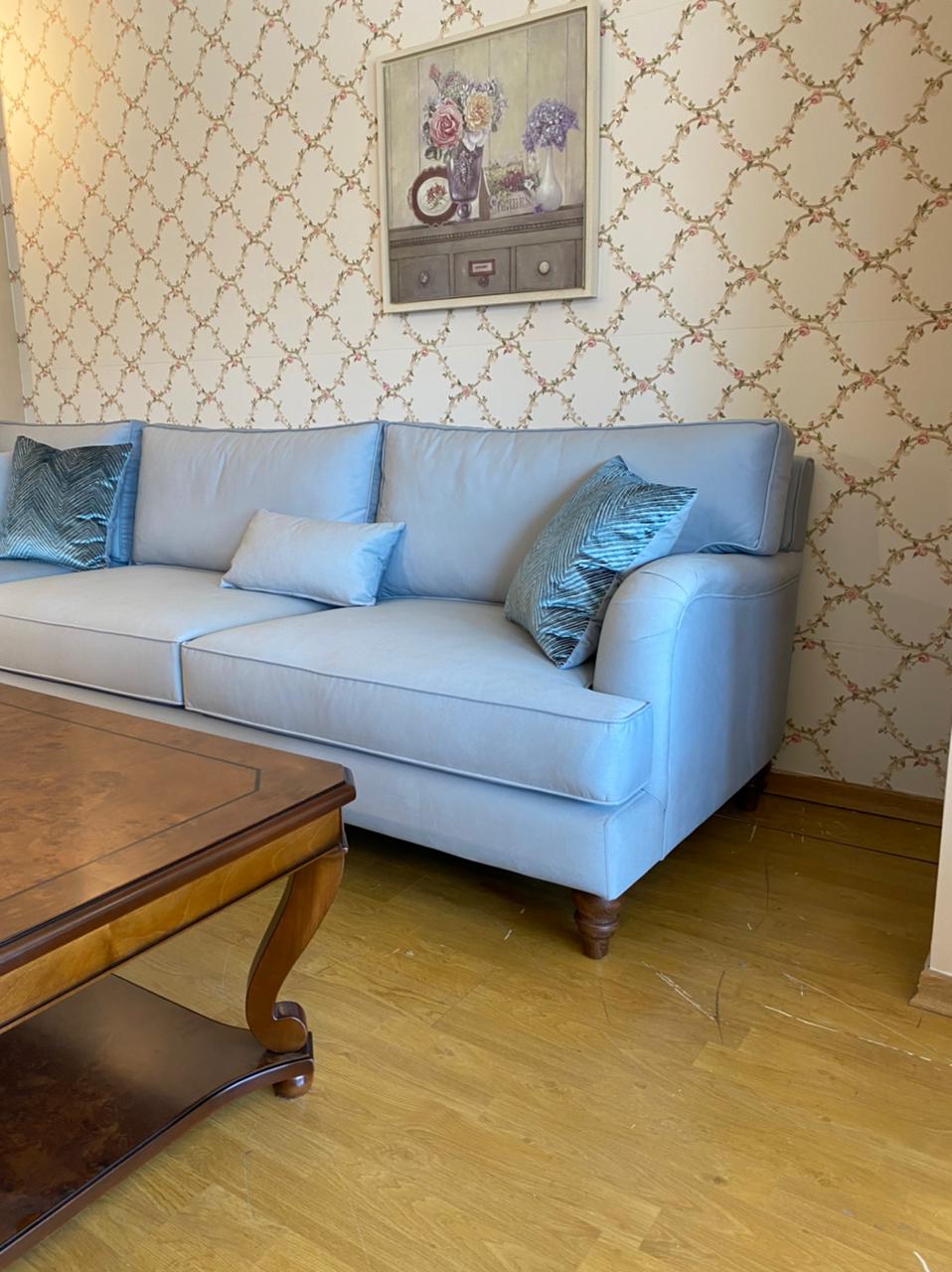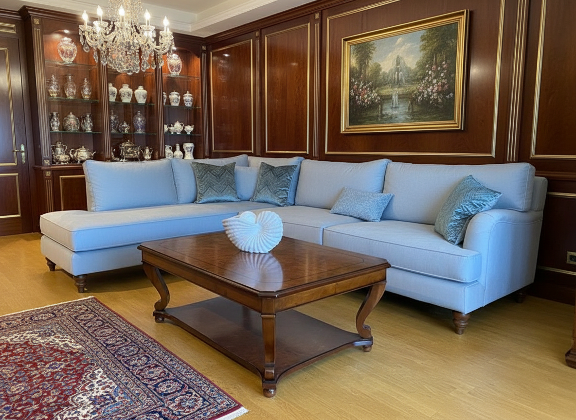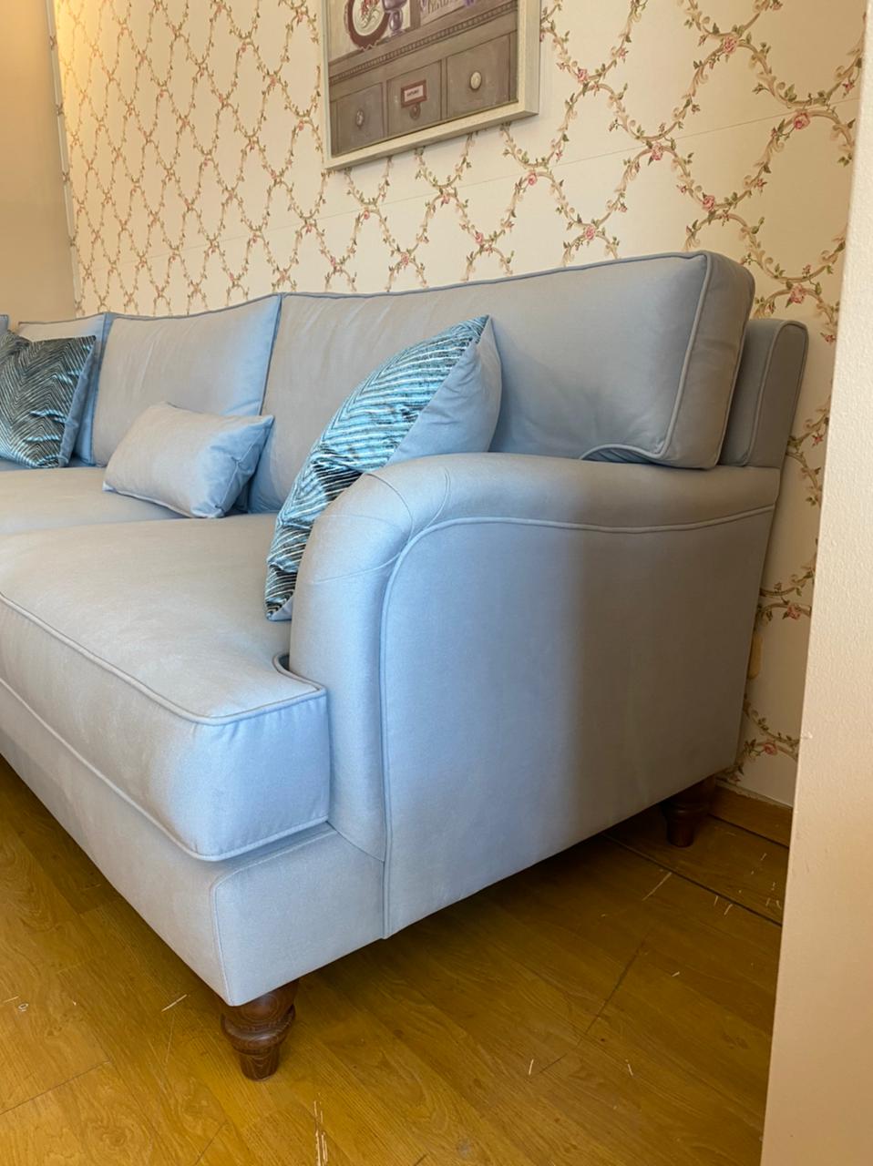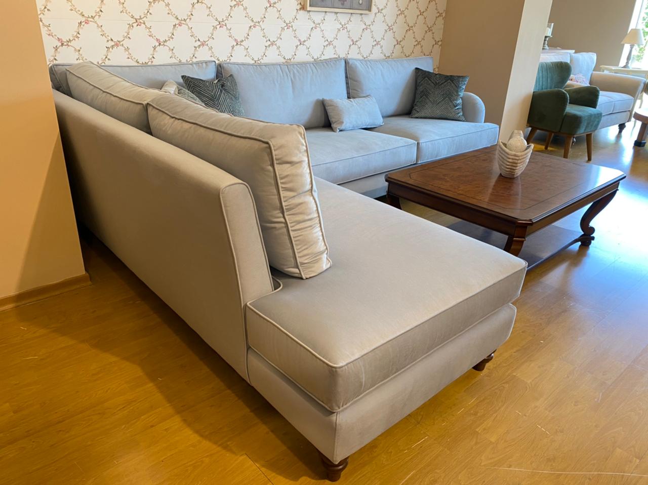 Καναπές γωνία χειροποίοτητος δικής μας κατασκευής διαστάσεων 3,00 m * 2.,30 m. Ο σκελετός είναι κατασκευασμένος από ξύλο οξυάς.
