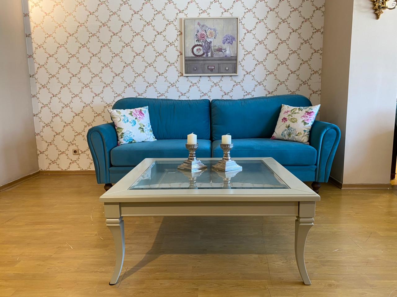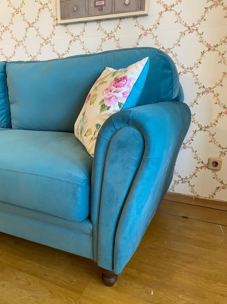 Καναπέ διθέσιο (1.80 m * 0.90 m) και τριθέσιο (2.30 m * 0.90 m) χειροποίητοι δικής μας κατασκευής. Ο σκελετός είναι κατασκευασμένος από ξύλο οξυάς.