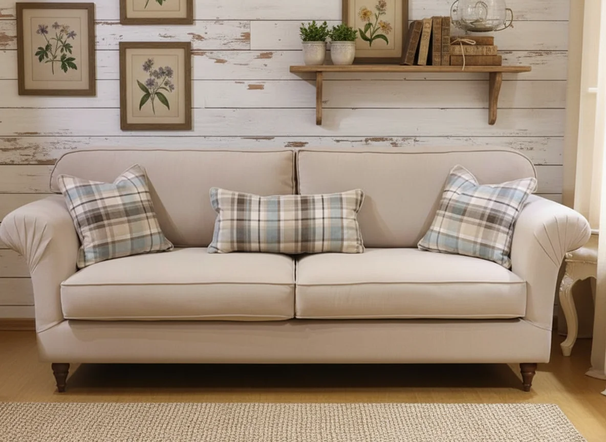 Καναπέ διθέσιο (1.80 m * 0.90 m) και τριθέσιο (2.30 m * 0.90 m) χειροποίητοι δικής μας κατασκευής. Ο σκελετός είναι κατασκευασμένος από ξύλο οξυάς.