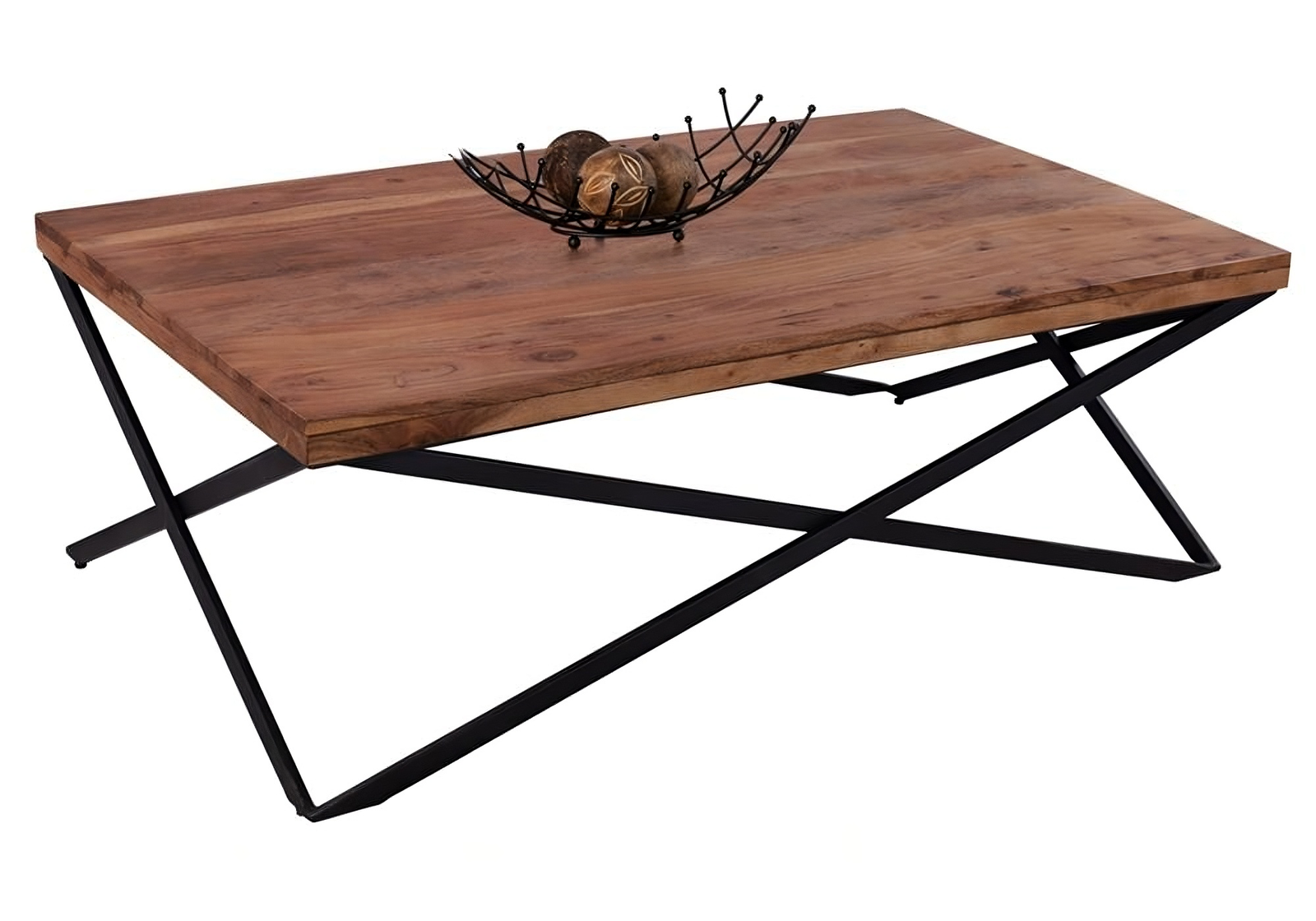 Ορθογώνιο τραπέζι για το σαλόνι, με ικανοποιητικές διαστάσεις σε φυσικό χρώμα ξύλου. Το τραπέζι στηρίζεται σε μια ΜΑΥΡΗ μεταλλική βάση. Αυτό το τραπέζι θα αναβαθμίσει αισθητικά το σαλόνι σας ενώ μπορεί να ταιριάξει με πολλά διαφορετικά στυλ και χρώματα στον τριγύρω χώρο. Αποτελείται από πολλά διαφορετικά κομμάτια μασίφ ξύλου ενωμένα για να σχηματίσουν το ορθογώνιο σχήμα του. Οι υπάρχουσες ρωγμές ή αυτές που ενδέχεται να δημιουργηθούν με την πάροδο του χρόνου οφείλονται στην συστολή-διαστολή του ζωντανού οργανισμού που λέγεται μασίφ ξύλο, και δεν αποτελούν κατασκευαστικό ελάττωμα, δίνοντας πρωτοτυπία και μοναδικό design στο χώρο σας. Αυτά δεν αποτελούν ελάττωμα του προϊόντος.